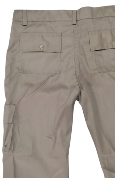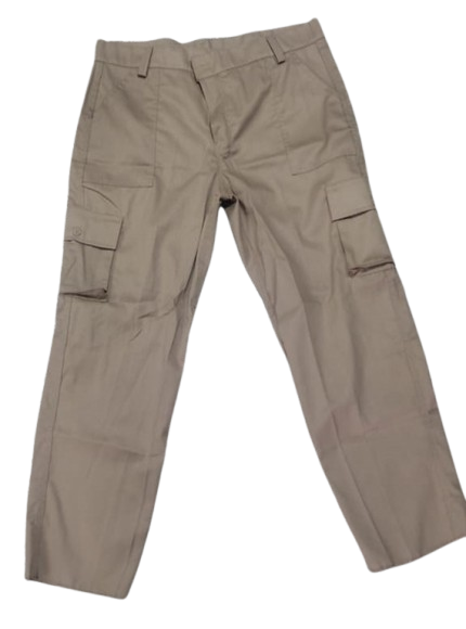 Pantalón dril nacional, 6 bolsillos, 4 bolsillos con tapa. Bolsillos laterales con fuelle.